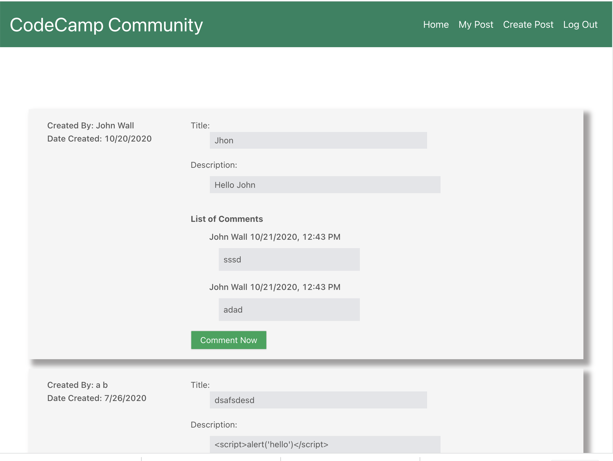 Description: This app is created using Node Express for creating API (application layer), mySQL for database (data layer) and React for the front-end (presentation layer). Students can create a thread of topic related to their code camp bootcamp class or just to keep up with everybody. They can also reply or post a comment to the forums posted by another student.