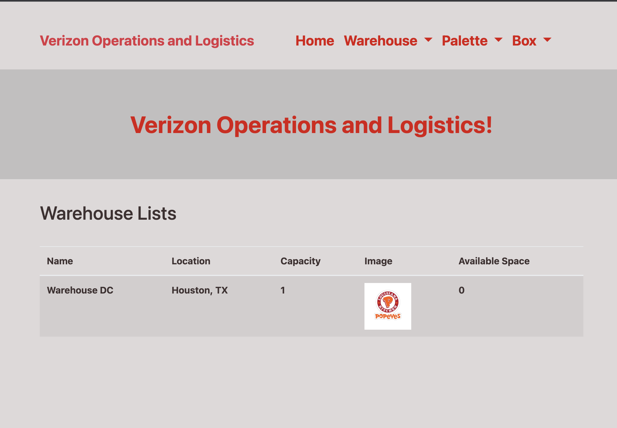Description: Warehouse Inventory App is a dynamic web page, where an employee can view the warehouses. Can add and remove palettes of inventory from a warehouse using a graphical user interface. And the palettes can only be added to warehouses with available capacity. And also the employee can also remove and add boxes of inventory from a palette using a graphical user interface. Boxes can only be added to palettes with available capacity. Used handlebars templates for creating user interface, Sequelize for the database and Node Express for creating API.